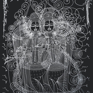 In Krishna Prakash Vasant’s series The World Public Relationship Connection, the spirit of Surpur miniature painting comes alive in a modern form. Working with monochromatic ink on paper, Krishna carries forward the precision of miniature art through his long, fluid lines.